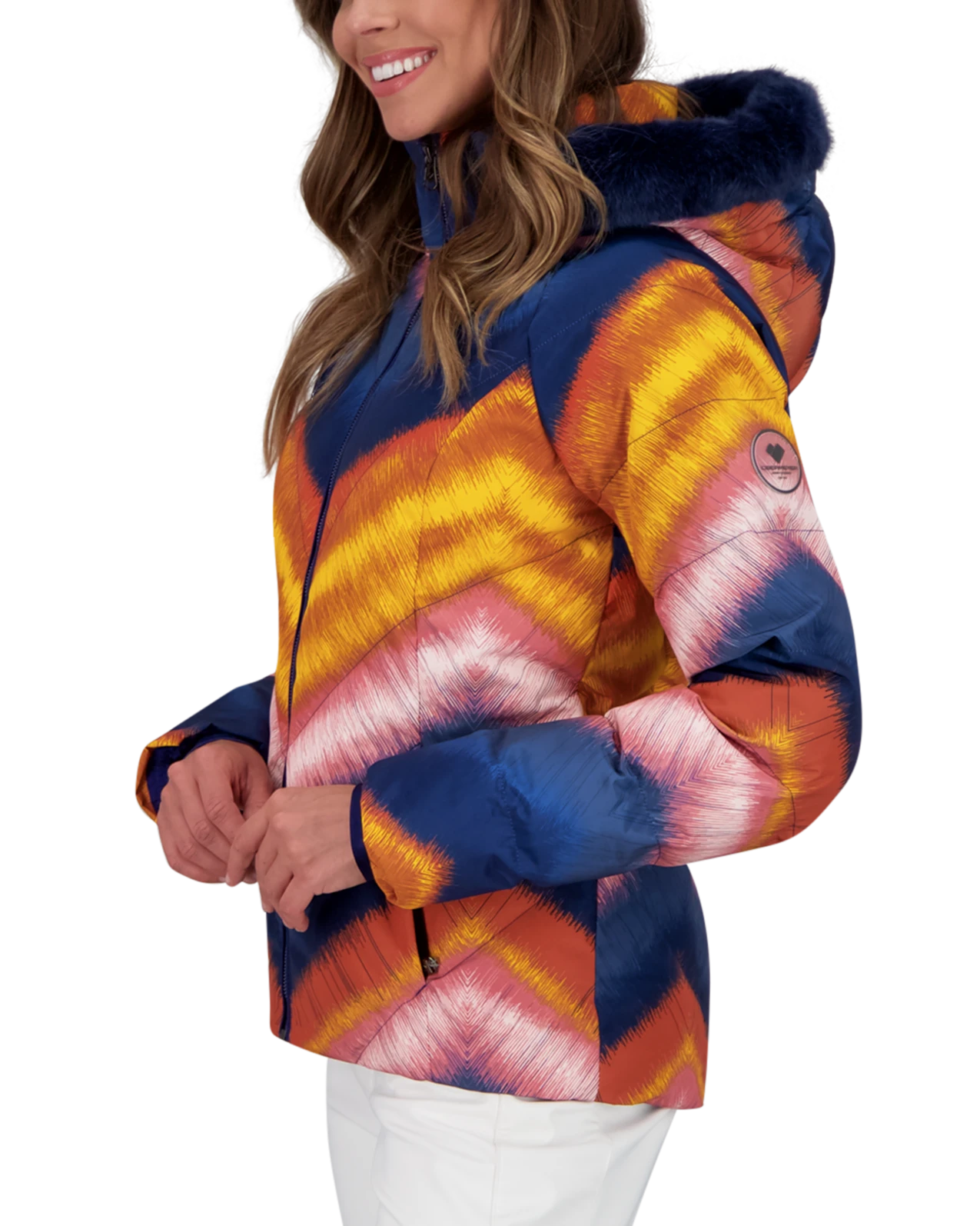 On the mountain, or on the town, our Bombshell Jacket is a ski-ready piece of outerwear that offers slope-to-street functionality and modern, fashion-forward design. This jacket is available n available in a variety of exciting prints and beautiful fabrics, and features a contoured silhouette. With synthetic down insulation and a removable faux-fur hood, the Bombshell Jacket is built to keep you feeling and looking great in any weather.