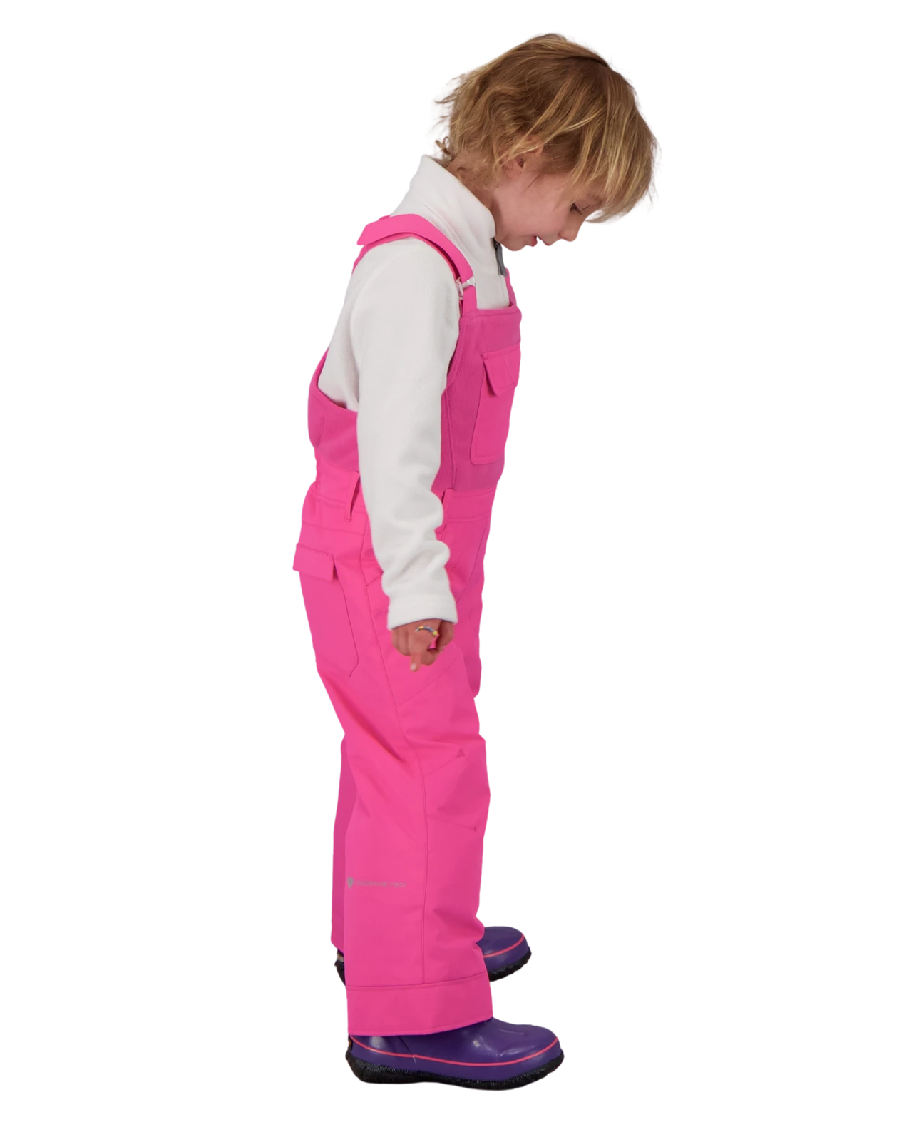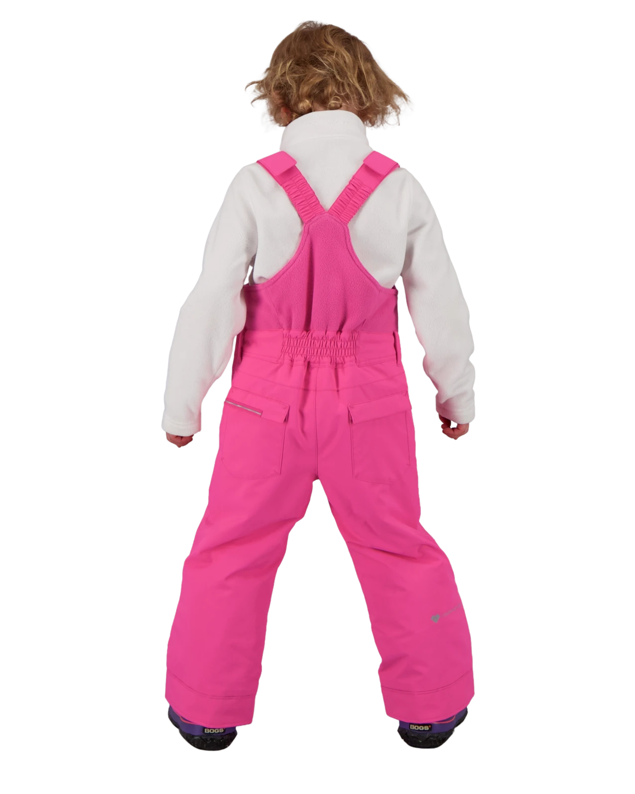 A super fun, cute, technical bib pant with critical seam sealing.  Quick release hook and loop shoulders make for easy dressing and custom adjustable fit. Durability is a must-have for hours of playtime so we reinforced hems, knees, seat, and inseams with the seat and knees having double-reinforcement. Flap jean pockets and an oversized chest pocket give her lots of room to stow her new-found treasures. Our innovative “I-Grow”™ Extended Wear System has built-in technology to increase the cuff length by 2 inches to allow for a growing child or a pass-it-along. Technical attributes include reflective trims, reinforced pant hems and inseams, thigh pocket, scuff guards, and water-resistant powder cuffs.