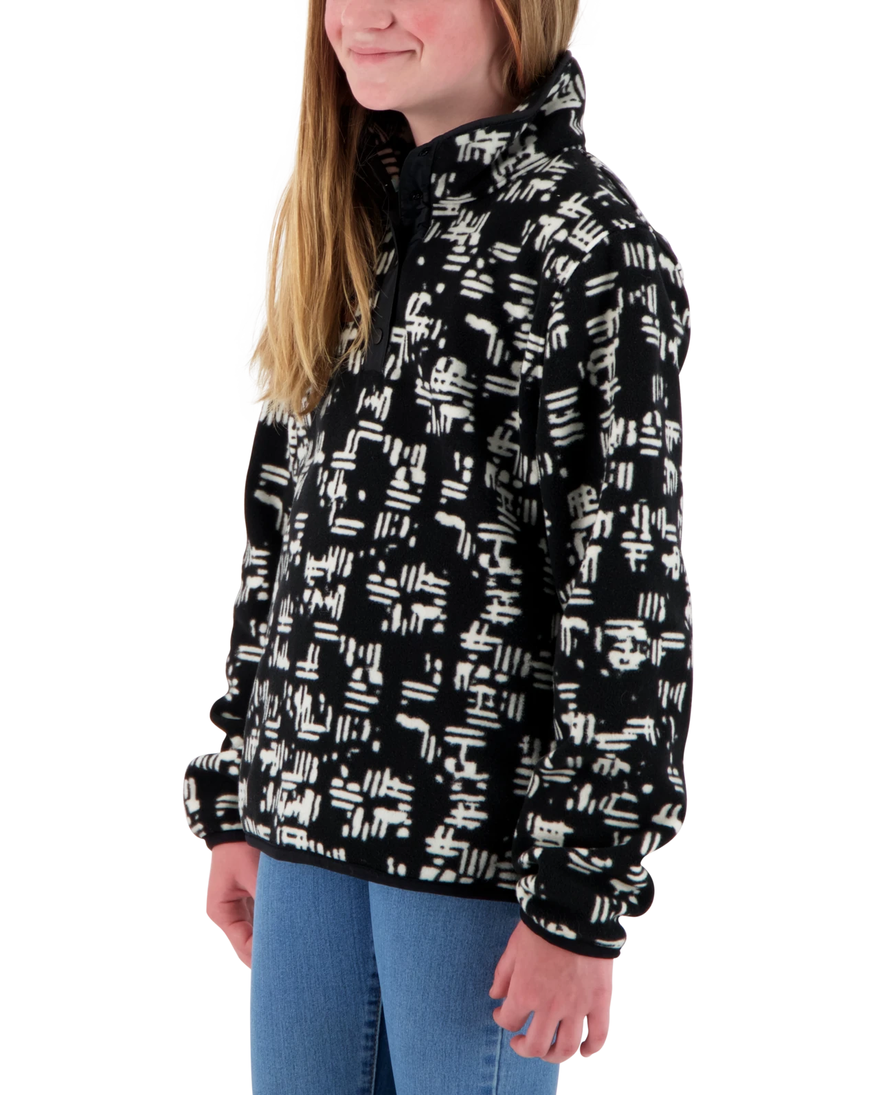 The Boulder is an update to our original and a class favorite, featuring a high quality double-sided brushed fleece, handwarmer pockets, a snap mock neck for easy on and off and layering, fun colors and one-of-a-kind prints.